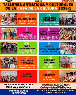 Coalcomán, Michoacán, a 06 de Enero del 2026.- Este lunes 5 de enero dieron inicio las inscripciones a los talleres artísticos y culturales que imparte la Casa de la Cultura de Coalcomán, un espacio dedicado a fomentar el talento, la creatividad y el desarrollo cultural de la comunidad.